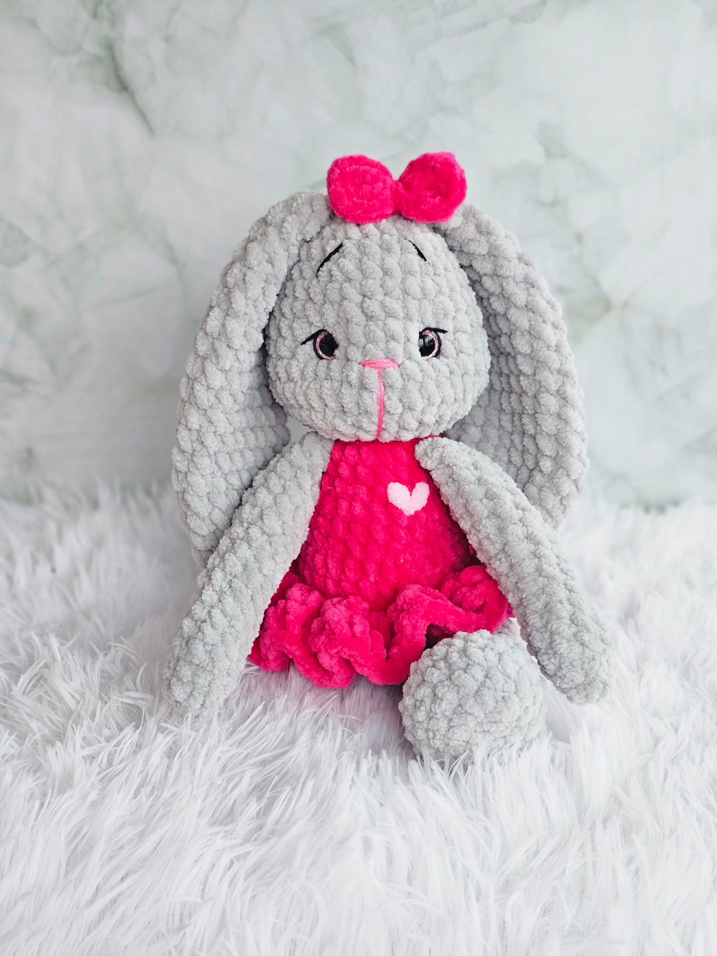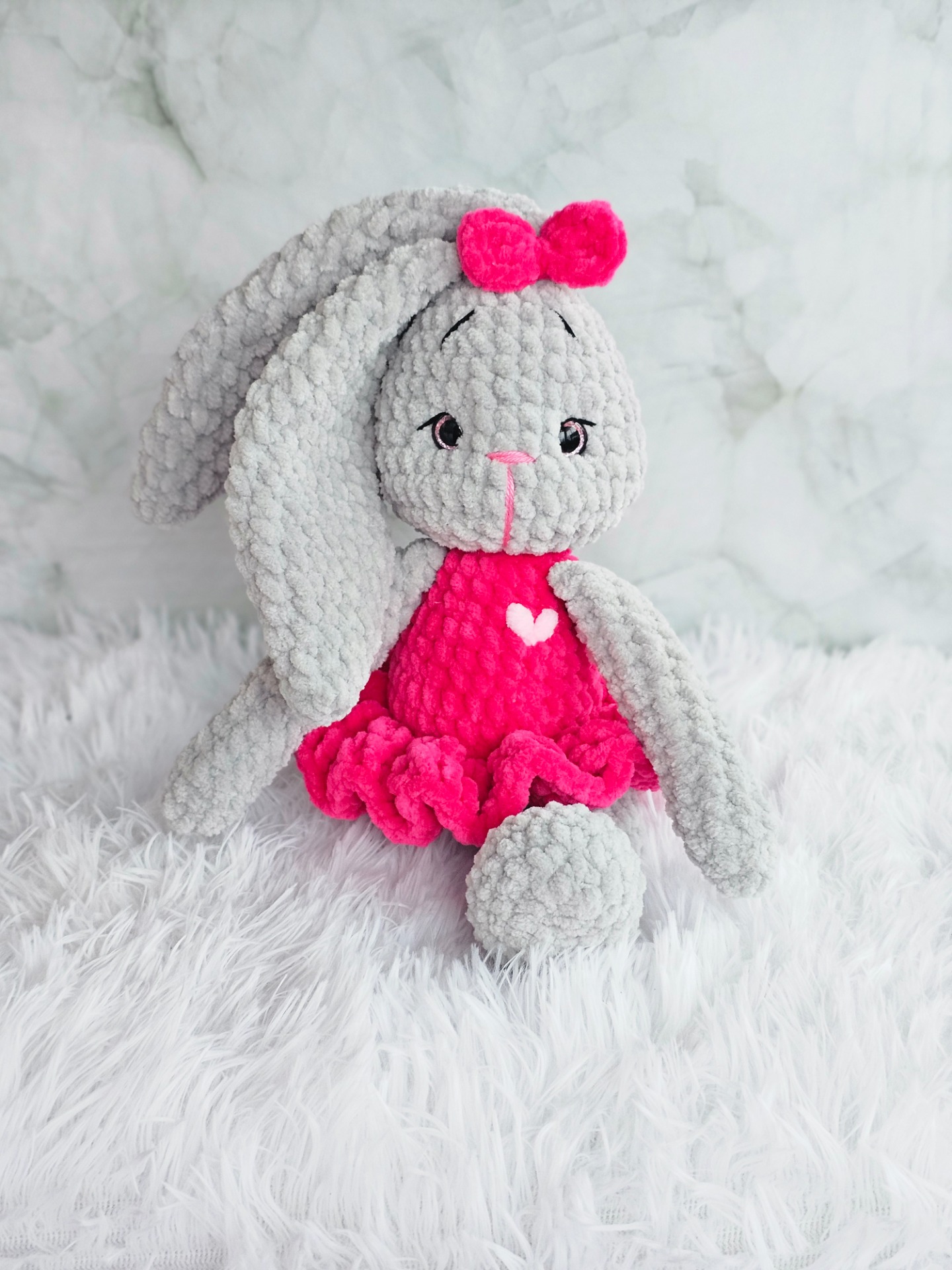 Horgolási technikával készült balerina nyuszi. kb 28cm magas. Töltete Antiallergén poliészter golyó.